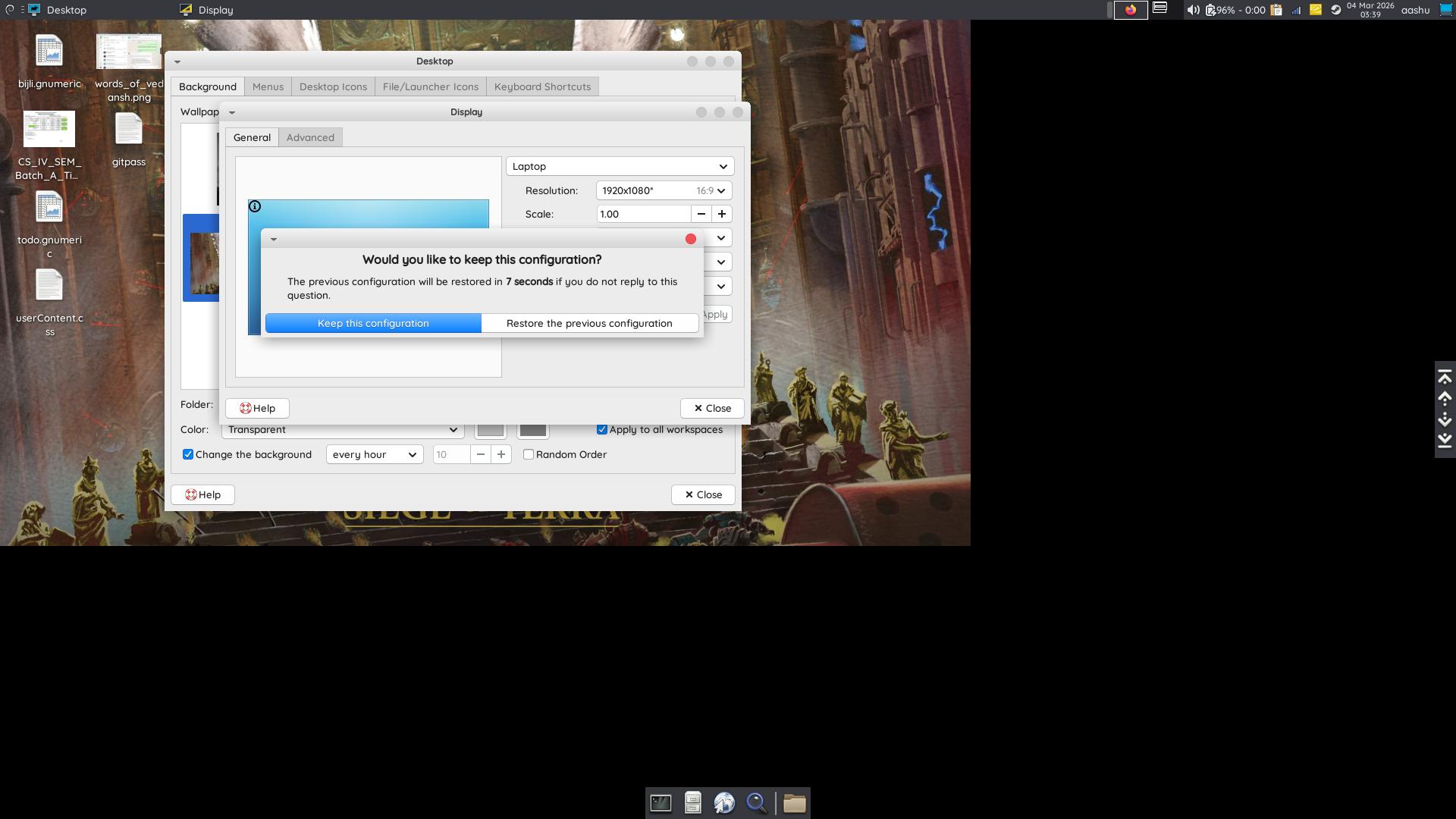 - On computer restart / logout and login, the wallpaper starts at correct size.